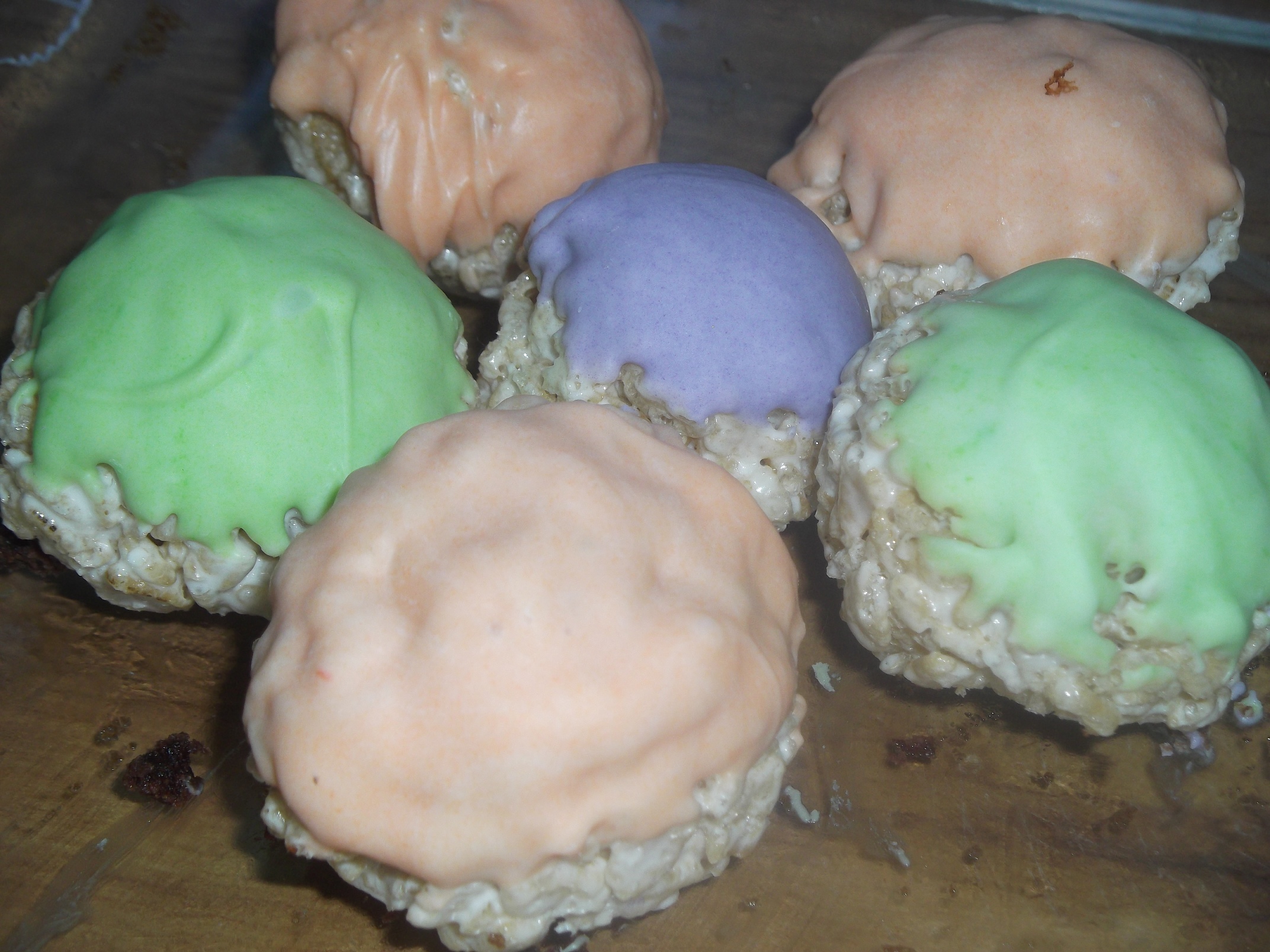 Just take your little balls, dip the non-flattened side in the chocolate, and set back on the tray (flat side down). Let chocolate harden and you're done! Of course, you could make these even cuter and make them into pops on a stick which would just be adorable and even more fun. But I didn't have sticks to use, so we just did balls.