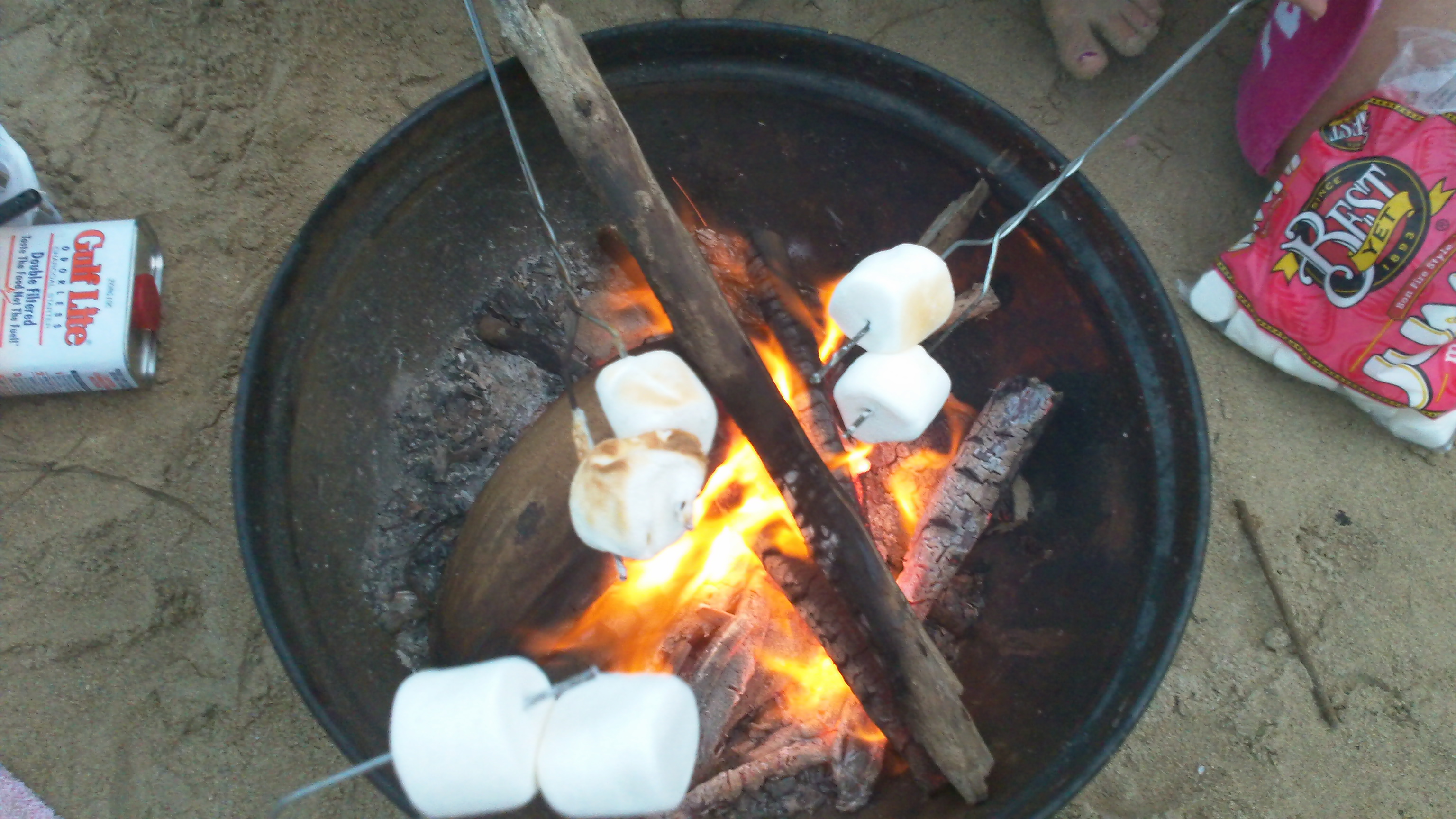 The next day we headed down to Kahana Bay, a beautiful secluded bay on the windward side of the island and sparked a small fire in a bar-b-cue to roast marshmallows.