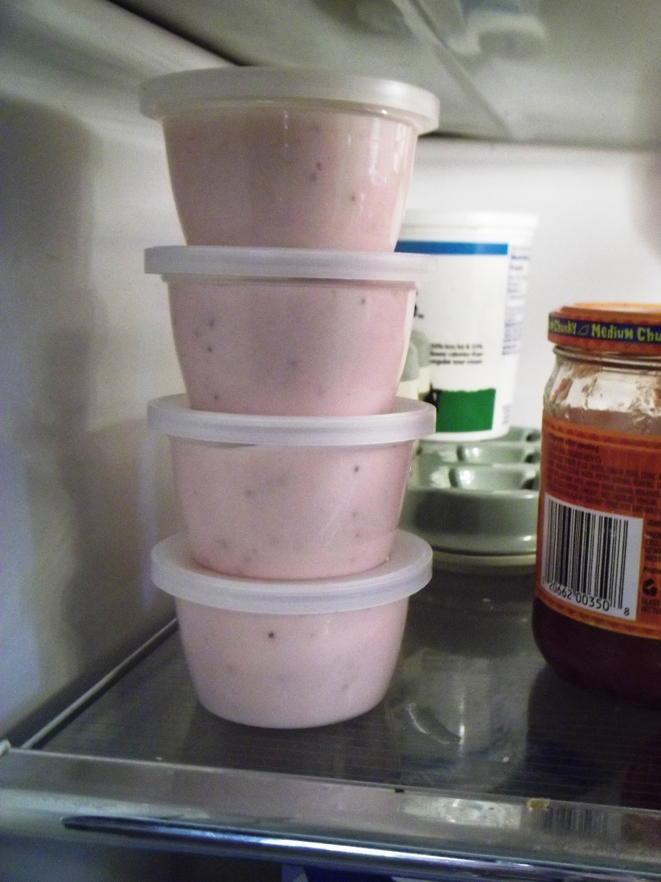 For the rest of you, we’ve been buying the baby food in glass jars for the past several months. As you may know, I prefer to flavor plain yogurt than to buy the store bought high-fructose-corn-syrup-and-dye-filled yogurts. But my girls LOVE the little packaging and perfect sizes of the store bought stuff. Aha moment. Instead of buying the glass bottled baby food, why not get the plastic ones that would fit yogurt and applesauce BEAUTIFULLY and then I can save health and money by flavoring plain yogurt and using a big jar of applesauce and dividing it among the cups!