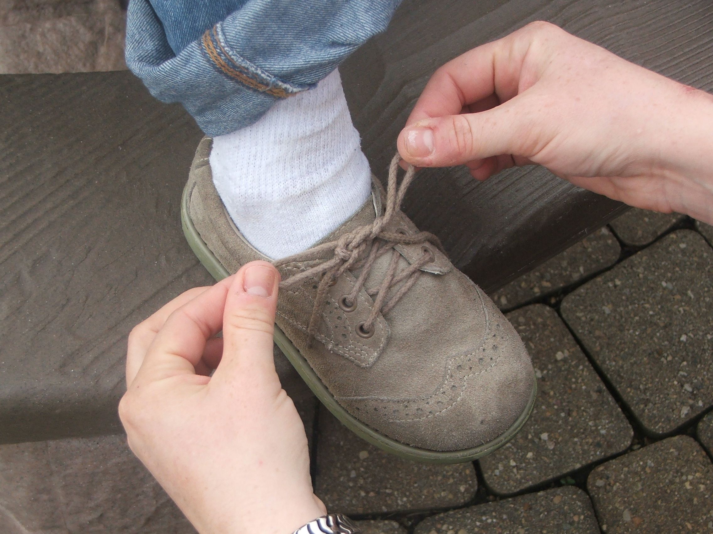 There is an incredible way to tie your shoes so that the laces do not come undone (like the double knot) but untie easily (unlike the double knot). Until college, I never knew there was another way to tie shoes. And ever since then, this way has become my one and only way to tie shoes, that I forget that not everyone has learned it yet. Try it. It might just change your life.